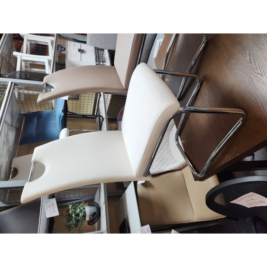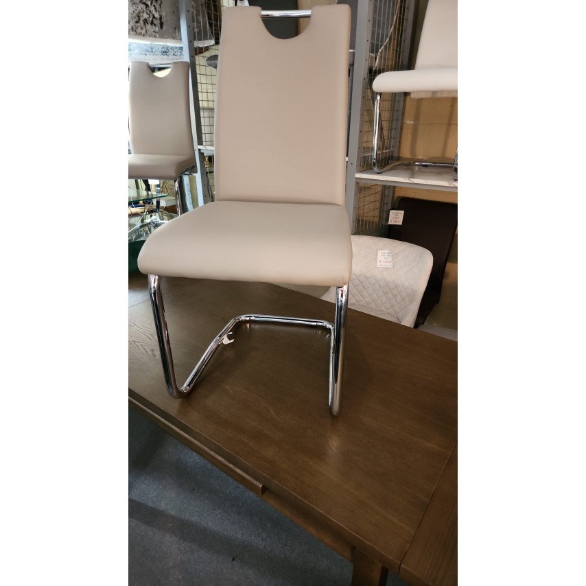 Bring a touch of modern elegance into your home with the clean design and contemporary |Dark Grey, Black or Taupe leather- look dining chairs. Featuring a comfortably padded seat and back and sleek, sturdy chrome metal legs these chairs will easily have you dining in style.
